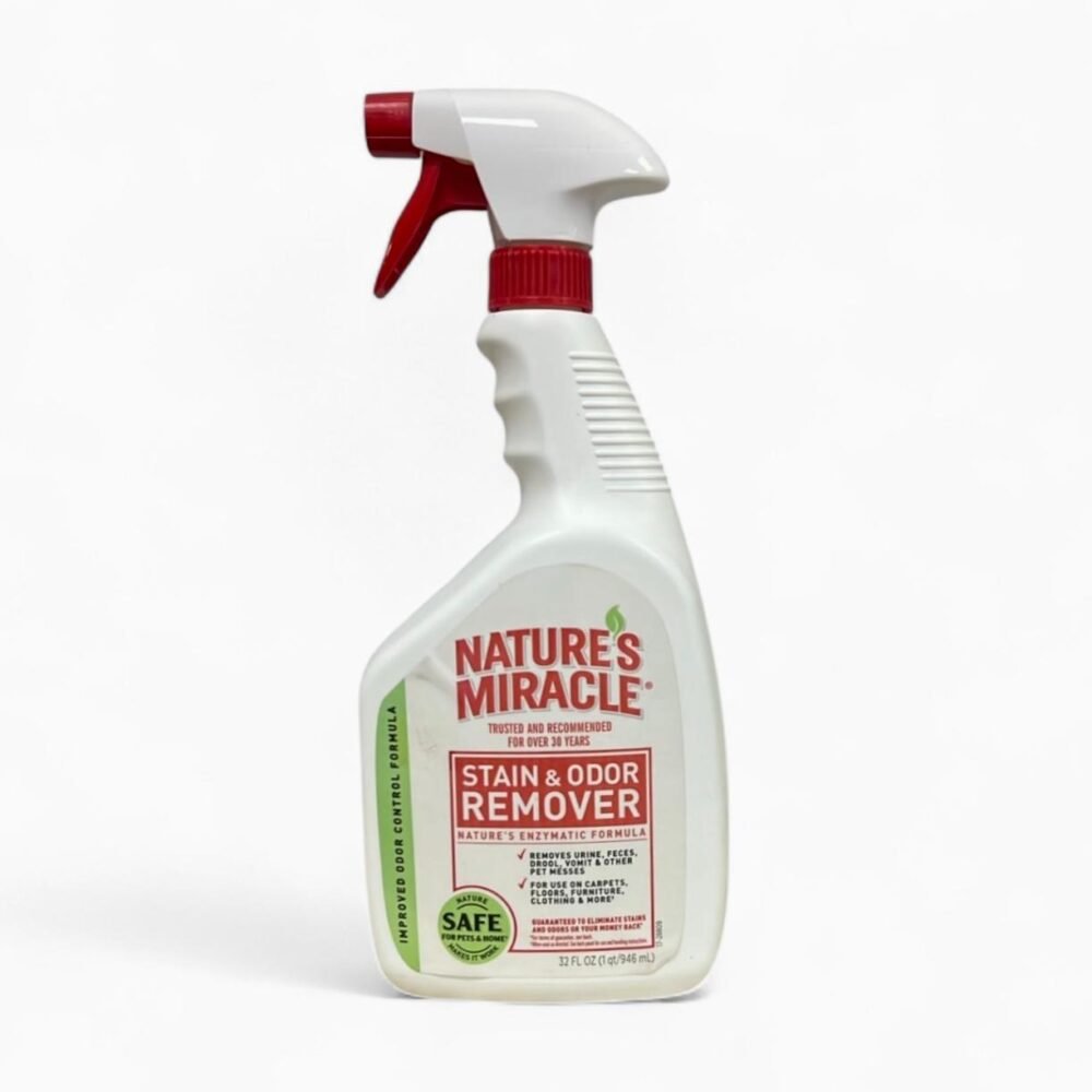 Nature’s Miracle Stain & Odor Remover is a trusted solution for pet parents, formulated to clean and refresh surfaces affected by common pet accidents. Using a powerful enzymatic formula, it effectively breaks down urine, feces, vomit, and other organic messes, eliminating both stains and odors.
